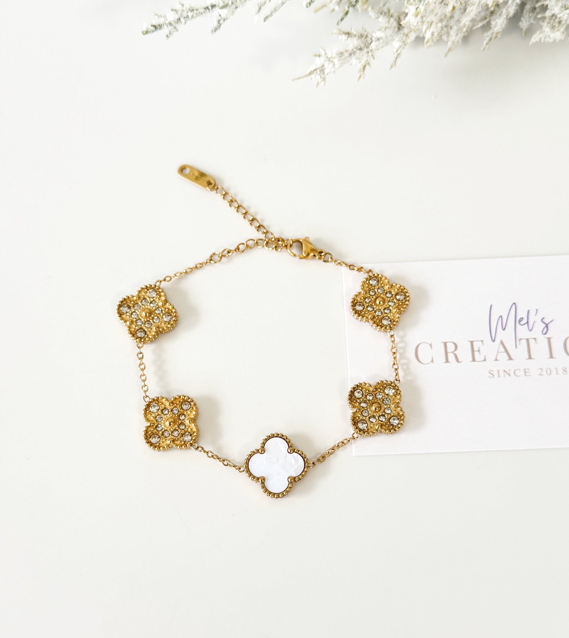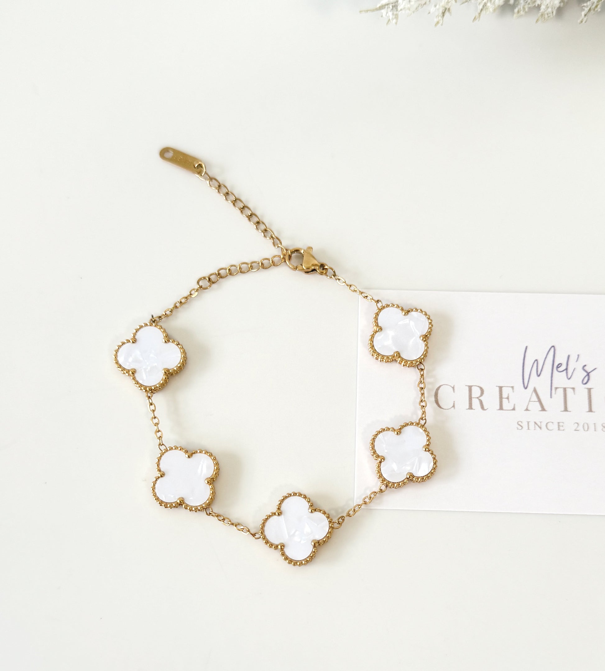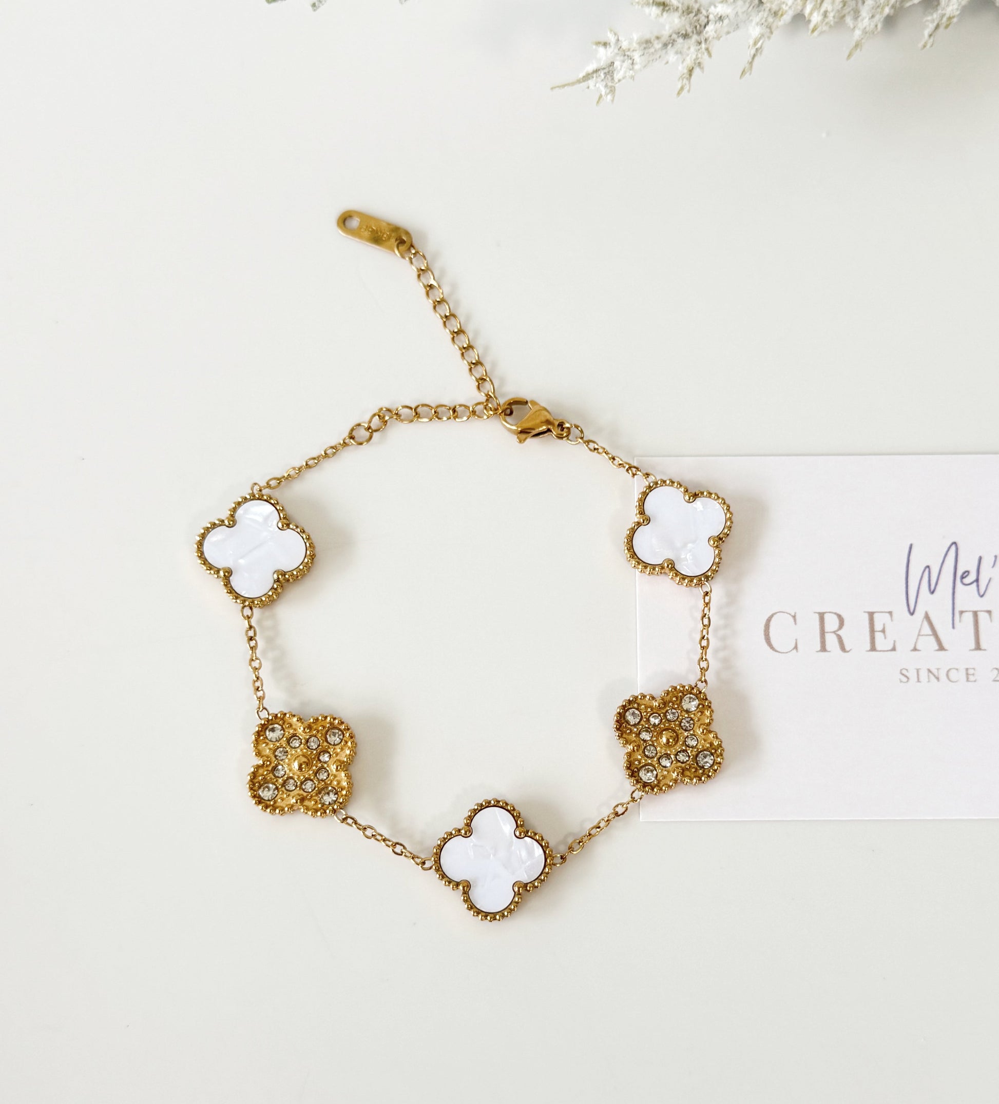Añade brillo a tu look con nuestra elegante pulsera Clover color blanca! Con tan solo voltear el trébol, puedes hacer tu combinación favorita y hasta lograr 6 estilos diferentes a utilizar. Esta pulsera te hará destacar ante la multitud!