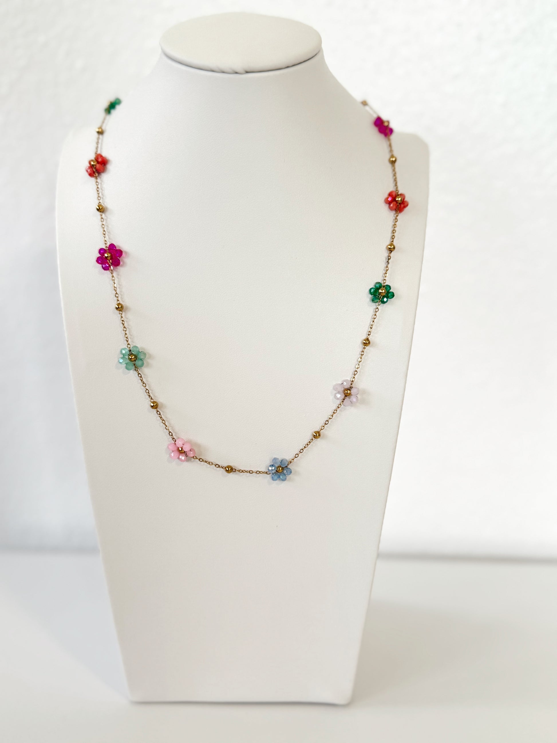 Este hermoso y colorido collar le da un toque delicado y divertido a cualquier outfit. Puedes combinarlo con el brazalete para terminar de elevar tu look.