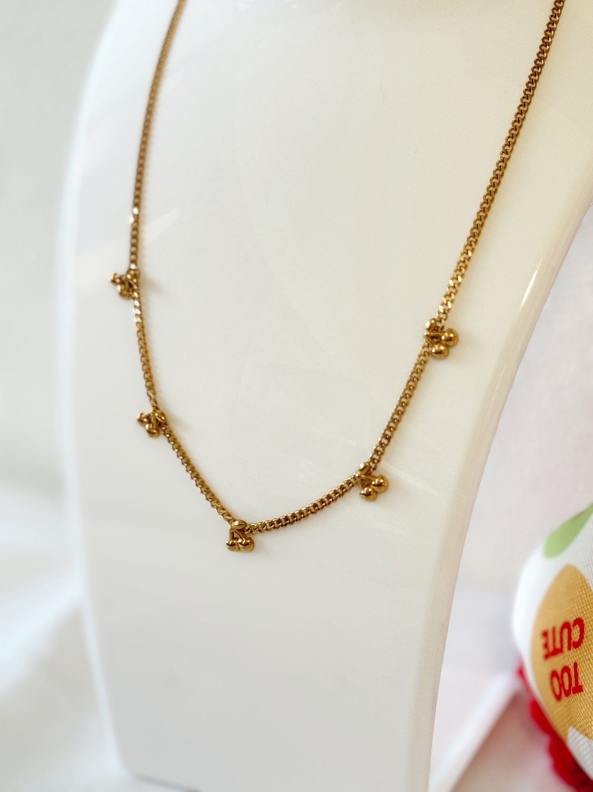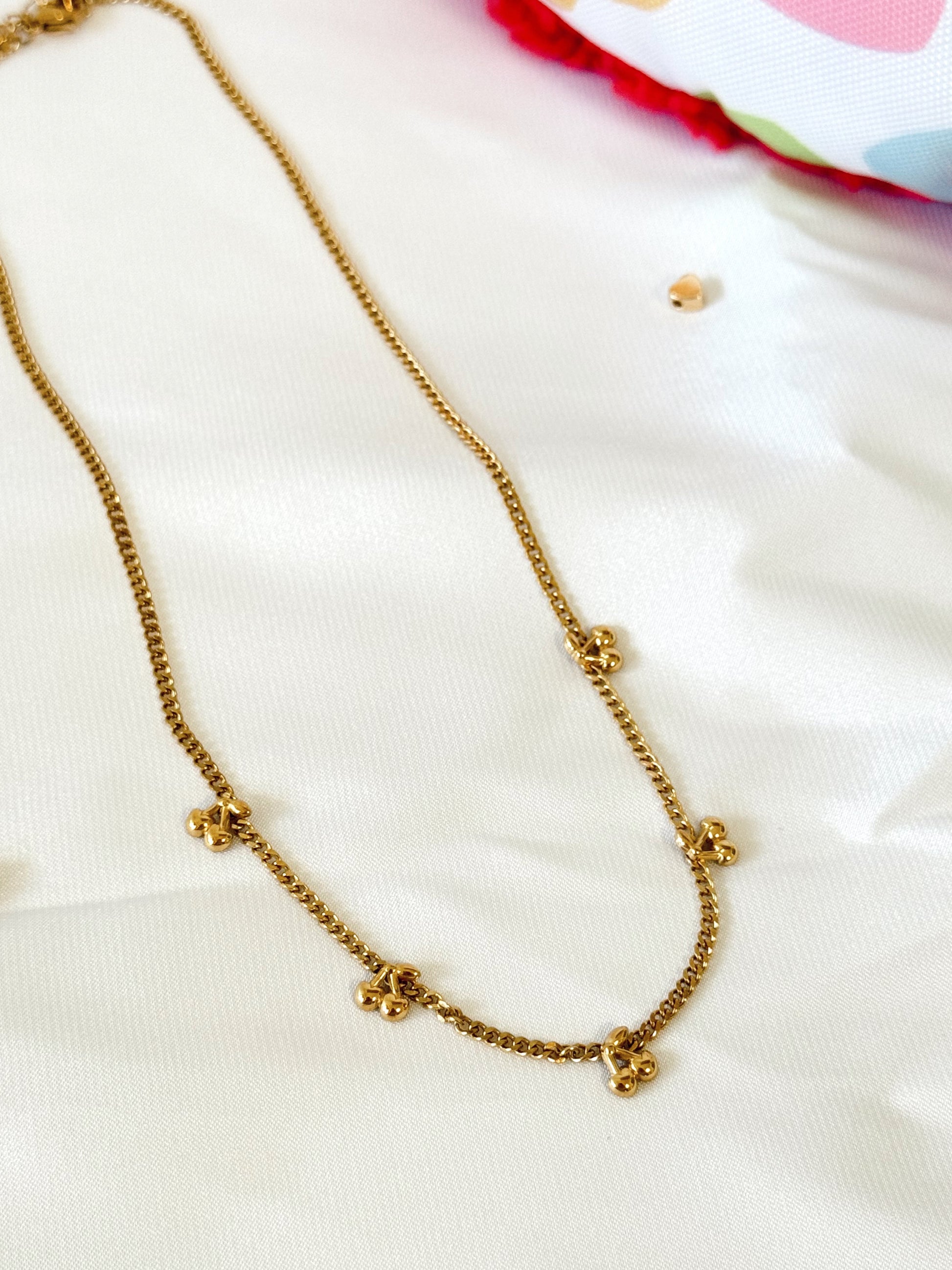 Expresa tu lado divertido con nuestro collar Golden Cherrys! Las cherrys doradas que marcan tendencia, añaden un toque único de estilo a cualquier look. Además, esta pieza es perfecta para combinar con nuestros aretes de cherrys, ya que en conjunto lucen espectacular!