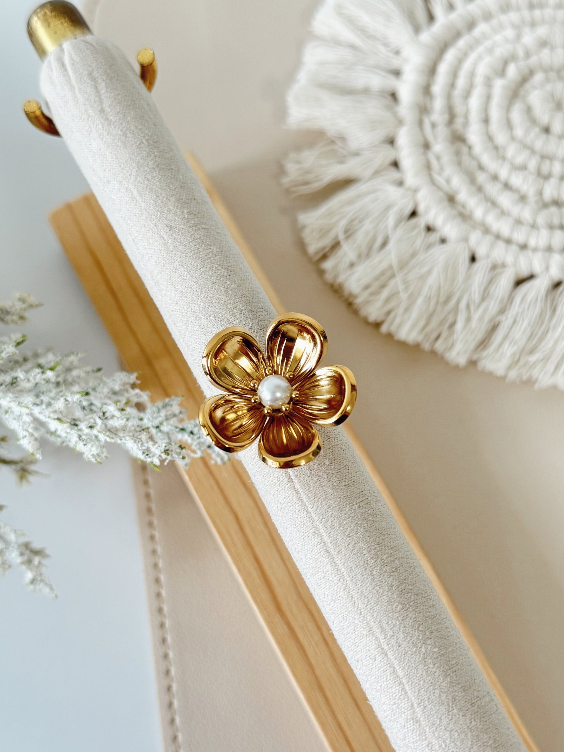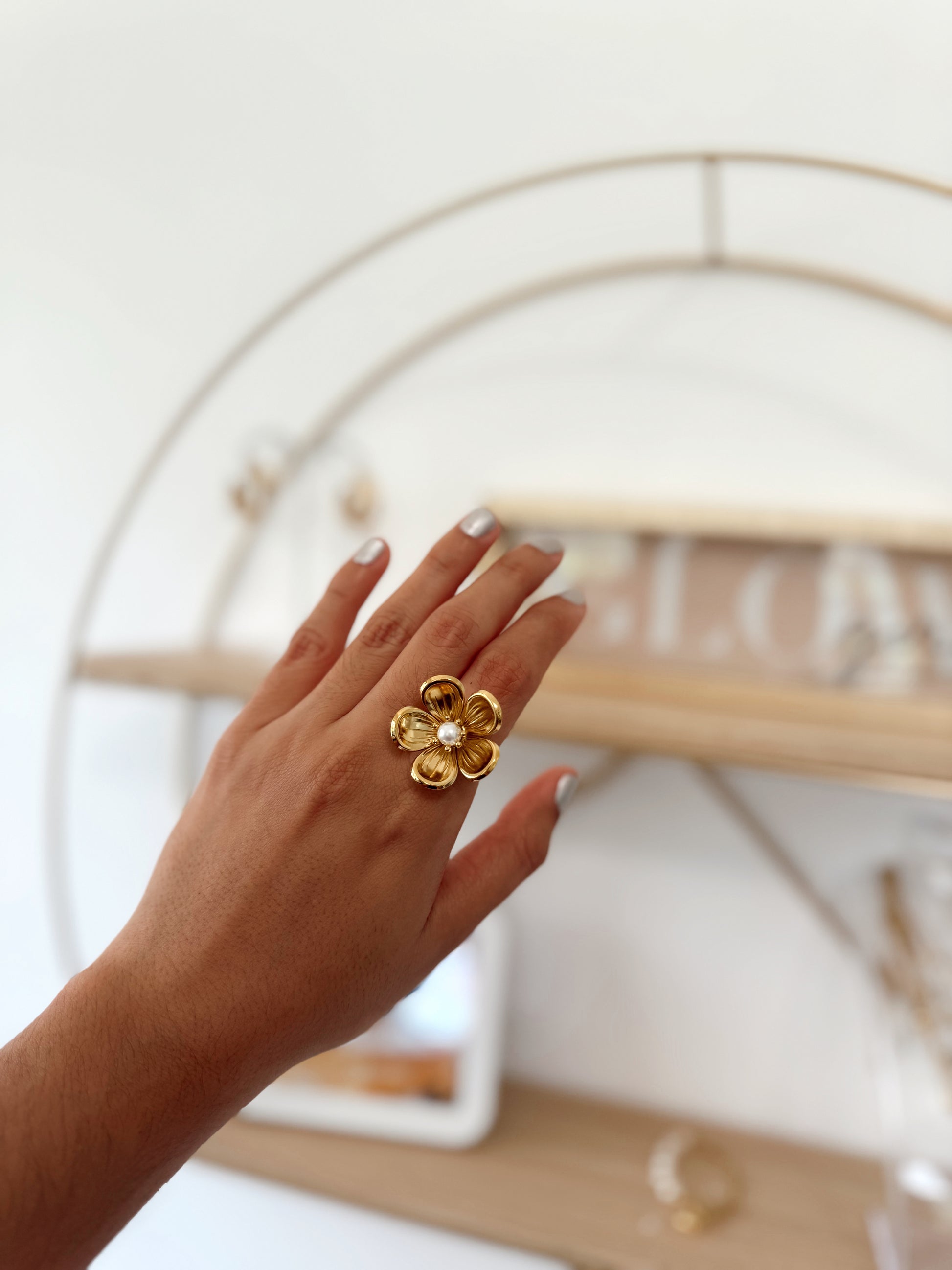 La sortija Susana en color oro es una pieza que ofrece elegancia y delicadeza. Esta hermosa pieza resalta por su diseño delicado, atractivo y por el detalle con perla que posee. También, nos recuerda la hermosura de las flores y la naturaleza.
